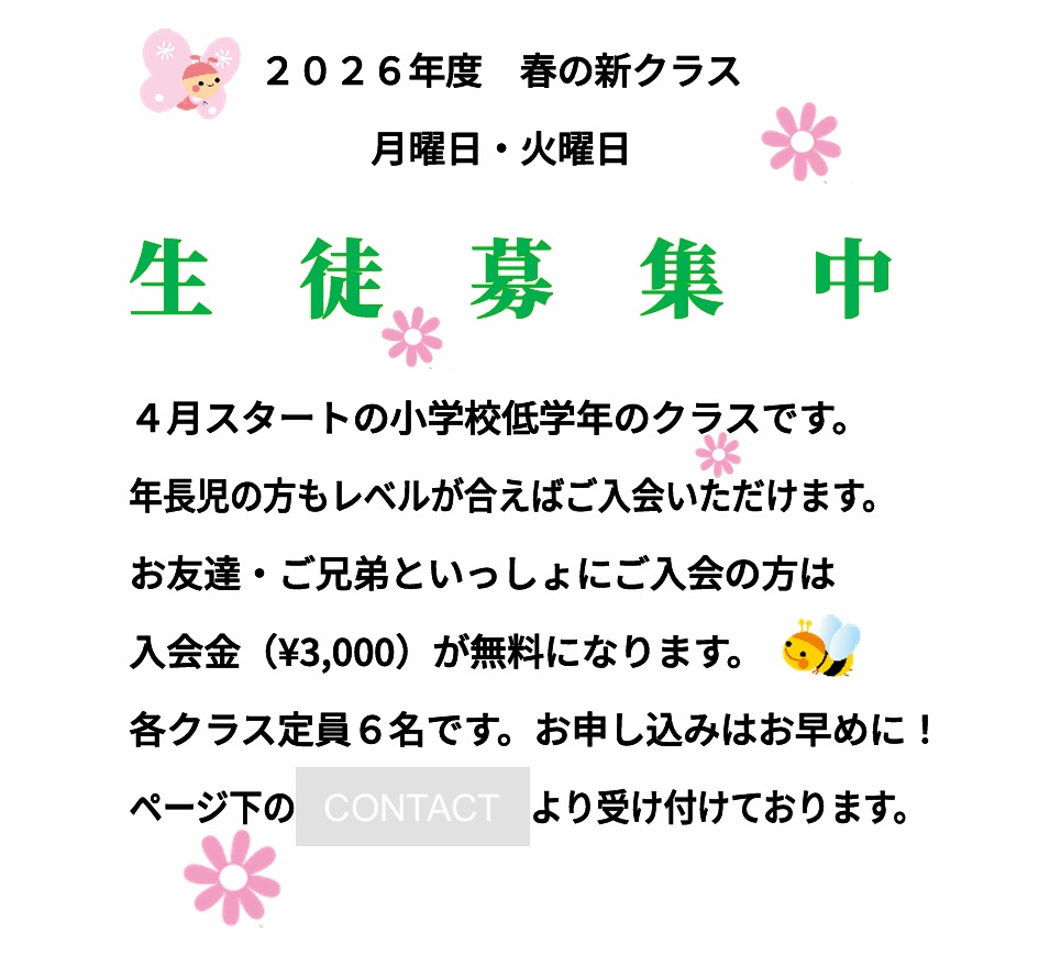新しいクラスは毎年4月に開講します。生徒募集を1月末頃から始めます。